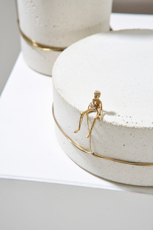 Serie Pescador - Escultura N4 - Concreto Branco e Latão