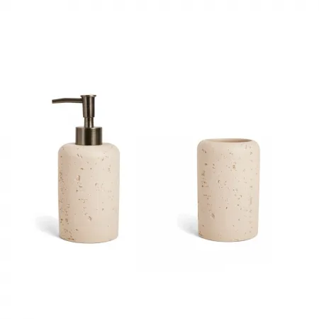 Conjunto Saboneteira e Porta Escovas para Banheiro Bege