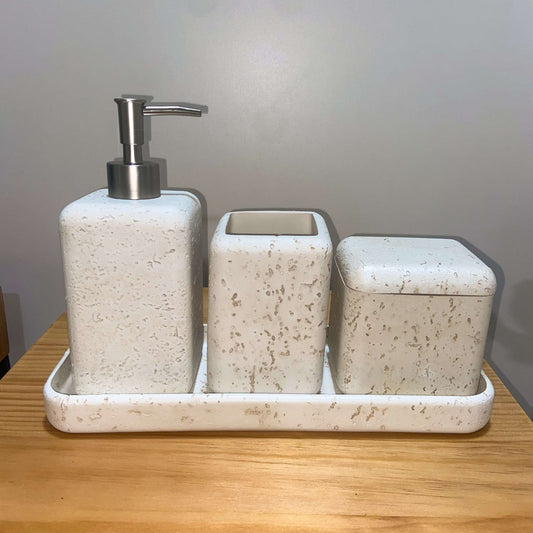 Conjunto Orgânico para Banheiro em Cimento Off-White 4 peças