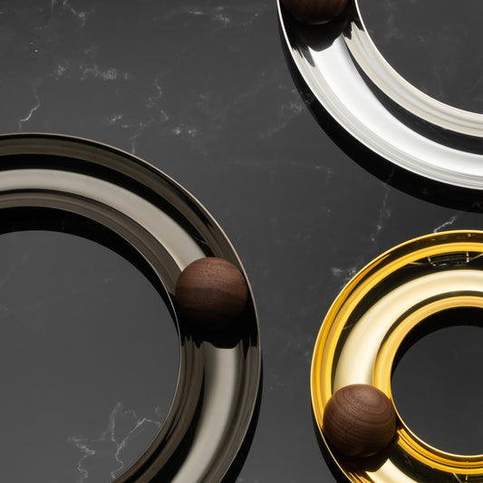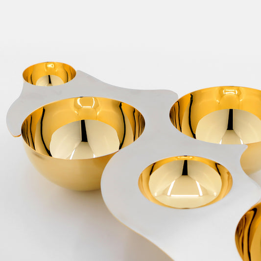 Porta Aperitivo Átomos Inox e Ouro 24k - Claudia Moreira Salles